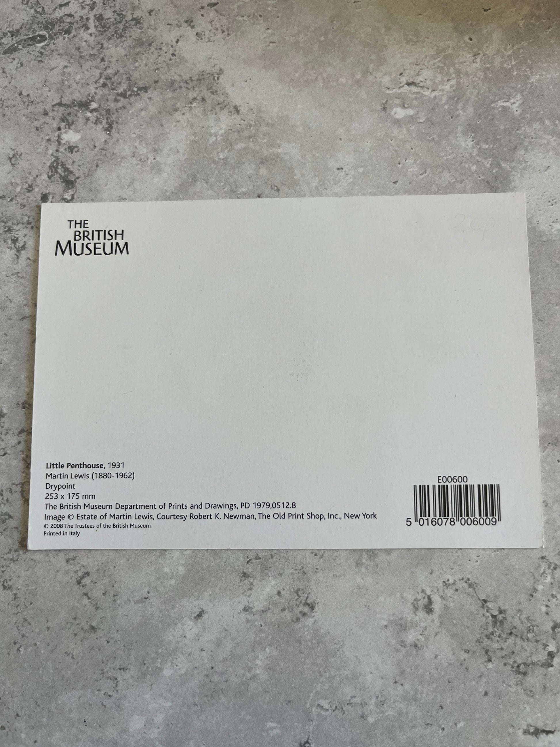 Vintage ‘Little Penthouse’ by Martin Lewis 1931 British Museum Blank Postcard